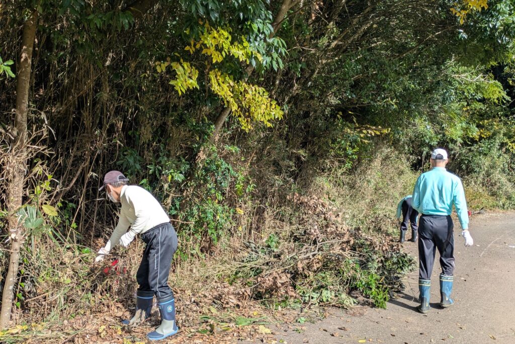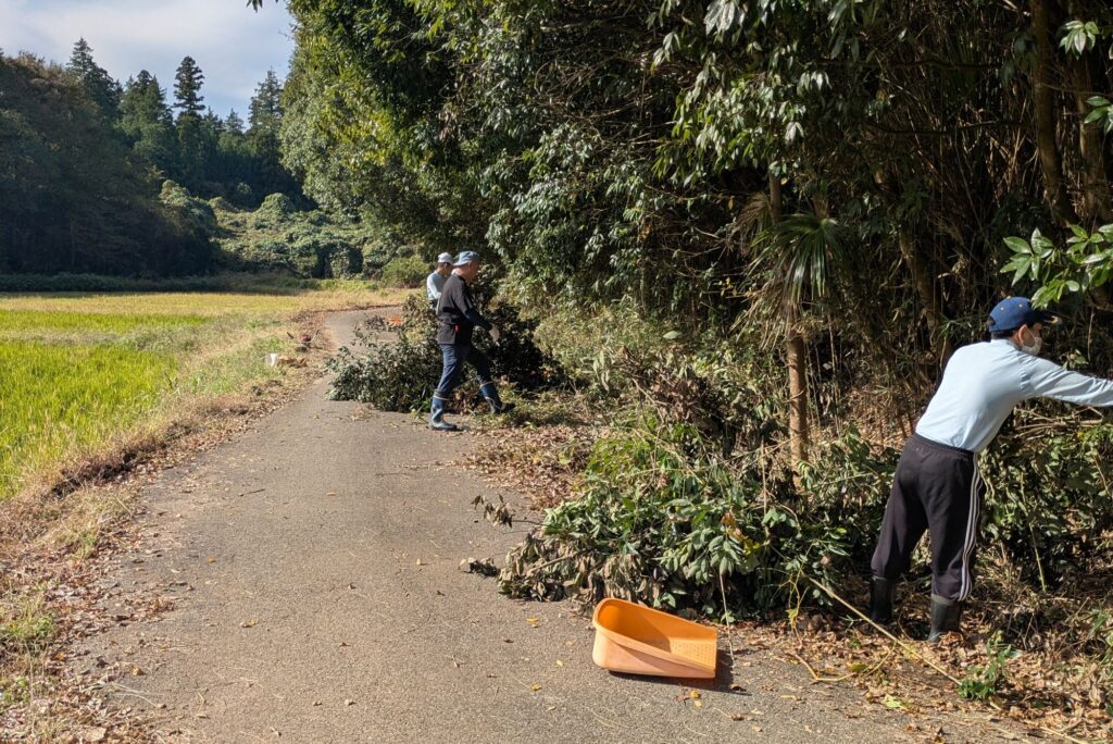 大会に使用する道は農道であるため、両脇に雑草や多い茂ってきて木などがあり、走りづらい箇所がいくつかあります。そんな雑草や木を枝払いするなどして走りやすくしていきます。毎朝走っているコースでもあるので、日々のマラソンでも走りやすくなります。
