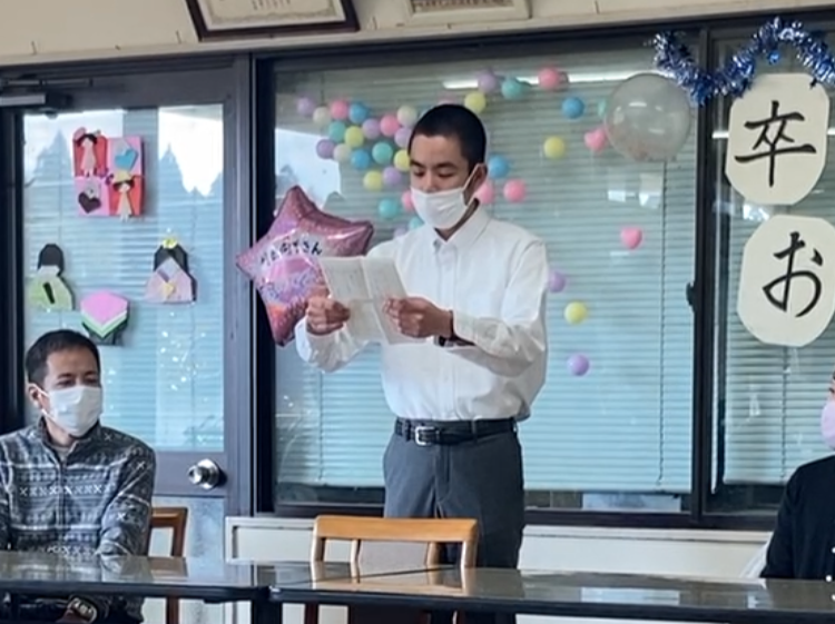 自宅から遠い光の村まで、毎週迎えに来てくださったこと、それは決して当然のことではありません。あなたを支え、見守ってくれた多くの思いに、常に感謝の気持ちを忘れず、皆の目標となる自慢の卒業生になってくれることを祈っております。