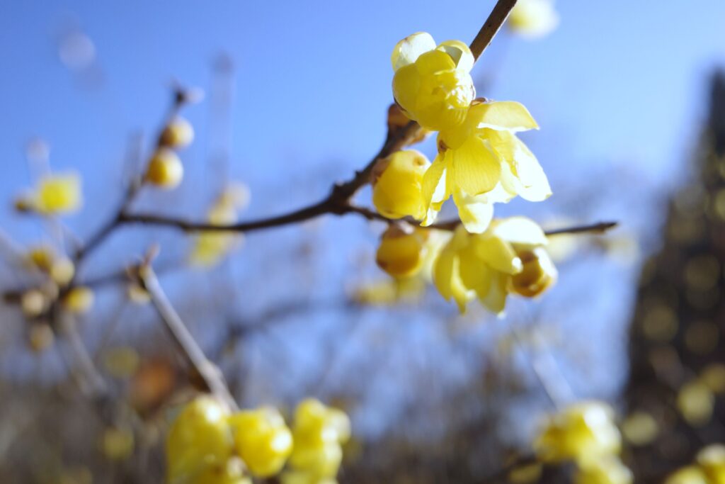 公園に一歩足を踏み入れると、どこからかともなく甘く優しい香りが・・・。ふと見ると臘梅(ロウバイ)が透き通るような黄色い花を咲かせていました。この香りを嗅ぐと、寒さの中にも確実に春が近づいているのを感じますね。