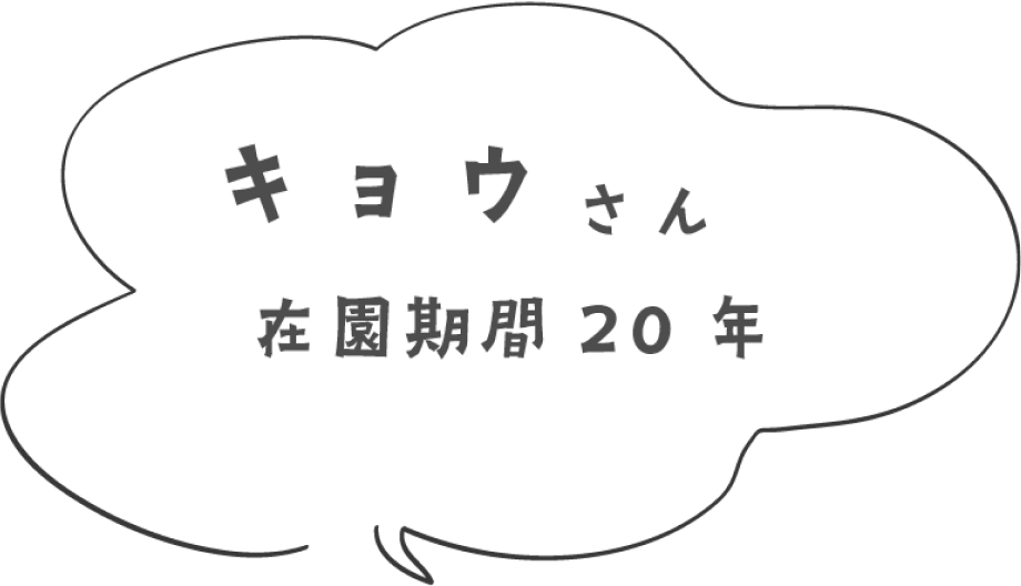 県立高校を卒園後にビル清掃業務を行う日本橋の特例子会社に就職して10年弱で退職 > あかね園の実習に参加 > 2015年3月に光の村に入園 > 2020年に卒園 > 同年あかね園に入園 > 自立訓練 > 就労移行支援を2年受けて卒園 > 2022年4月(ご本人36歳)株式会社京樽に就職し現在に至る。